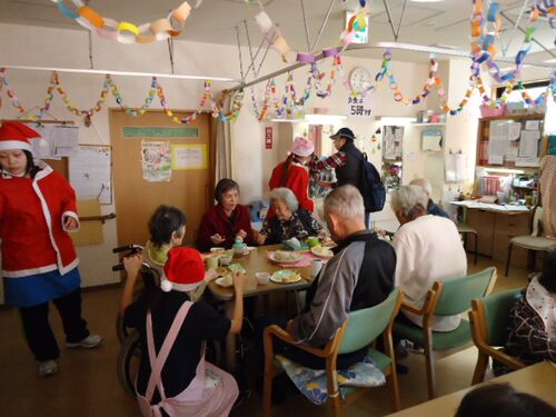 先日、わがガーデンコート常盤平でクリスマス会を行いました。 美人3姉妹のサンタさんヘ(゚∀゚ヘ)アヒャ トナカイ扮するマネージャーは… (茶色いドラえもん+のび太くんではございませんΣ(゚д゚|||)季節の行事、楽しんで頂けて良かったです☆