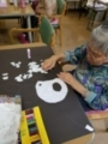 こんにちわ ガーデンコート常盤平です。今回は制作レクの風景をお伝えします。 十五夜に向けて小規模のお客様が何やら職員と一緒に準備をされています。小規模は曜日により参加されるお客様が異なる為、お客様の連係プレーがみられます。 どんどん絵になって…