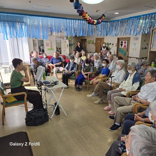 こんにちは、ガーデンコート常盤平です。 ボランティアのハーモニカ奏者の方に来て頂き演奏して頂きました。 ハーモニカの気持ちよい音色にみなさんうとうと。 眠りを誘うほど気持ちいい音色なんですね。 ちなみにこちらのお二人はハーモニカ演奏会がきっか…